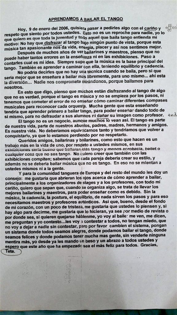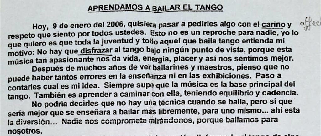 Pour terminer cette courte étude des interprétations, allons à la fin du morceau. Écoutez la fin de Bachicha. Il déroule tranquillement la partition, sans créer d’effet de surprise. Les deux accords finaux (dominante et tonique) sont joués avec quasiment le même volume. Un véritable « tsoin tsoin » final. J’ai une anecdote à ce sujet, mais je vous la conterai une autre fois. Maintenant, bon, OK. J’étais habitué à dire « tsoin tsoin » à la fin des morceaux. Ce tsoin-tsoin était couvert par les applaudissements. Cependant, un jour, nous avons interprété un choral de Bach durant une messe. Le problème est que dans ce type d’endroit, les gens n’applaudissent pas et que mon tsoin-tsoin a résonné dans toute l’église. Vais-je dire que j’ai encore honte, tant d’années après. Peut-être, mais en tous cas, cela a exacerbé ma sensibilité sur les fins de morceaux et les orchestres de tango sont un régal pour cela, chacun cherchant à donner sa signature.