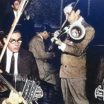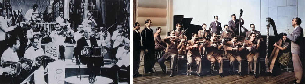 Orquesta Osvaldo Fresedo. À gauche, on voit bien le vibraphone. À droite, on voit bien la harpe. Le vibraphone est caché à l’arrière.